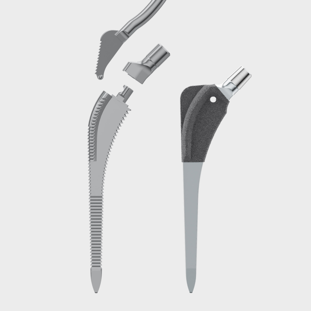 The Bicontact® philosophy is maximum preservation and protection of the existing bone substance. Based on the simple but crucial fact that the success of the prosthesis fixation depends on both – implant and bone. To do this, instruments were developed that compress the bone instead of removing it. The Bicontact® system comprises various stem types for different anatomical morphologies and offers both cementless and cemented implantation options.